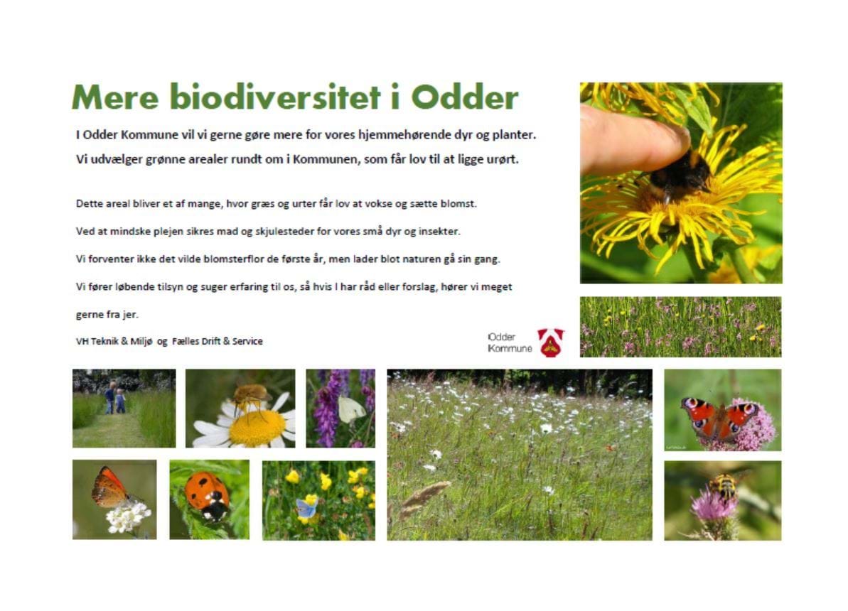 Odder Kommunes driftsafdeling står for driften af en række kommunalt ejede grønne områder, parker, legepladser og sportspladser m.m. Der er tale om rekreative og grønne åndehuller, som med den rette drift også kan bidrage væsentligt til biodiversiteten.