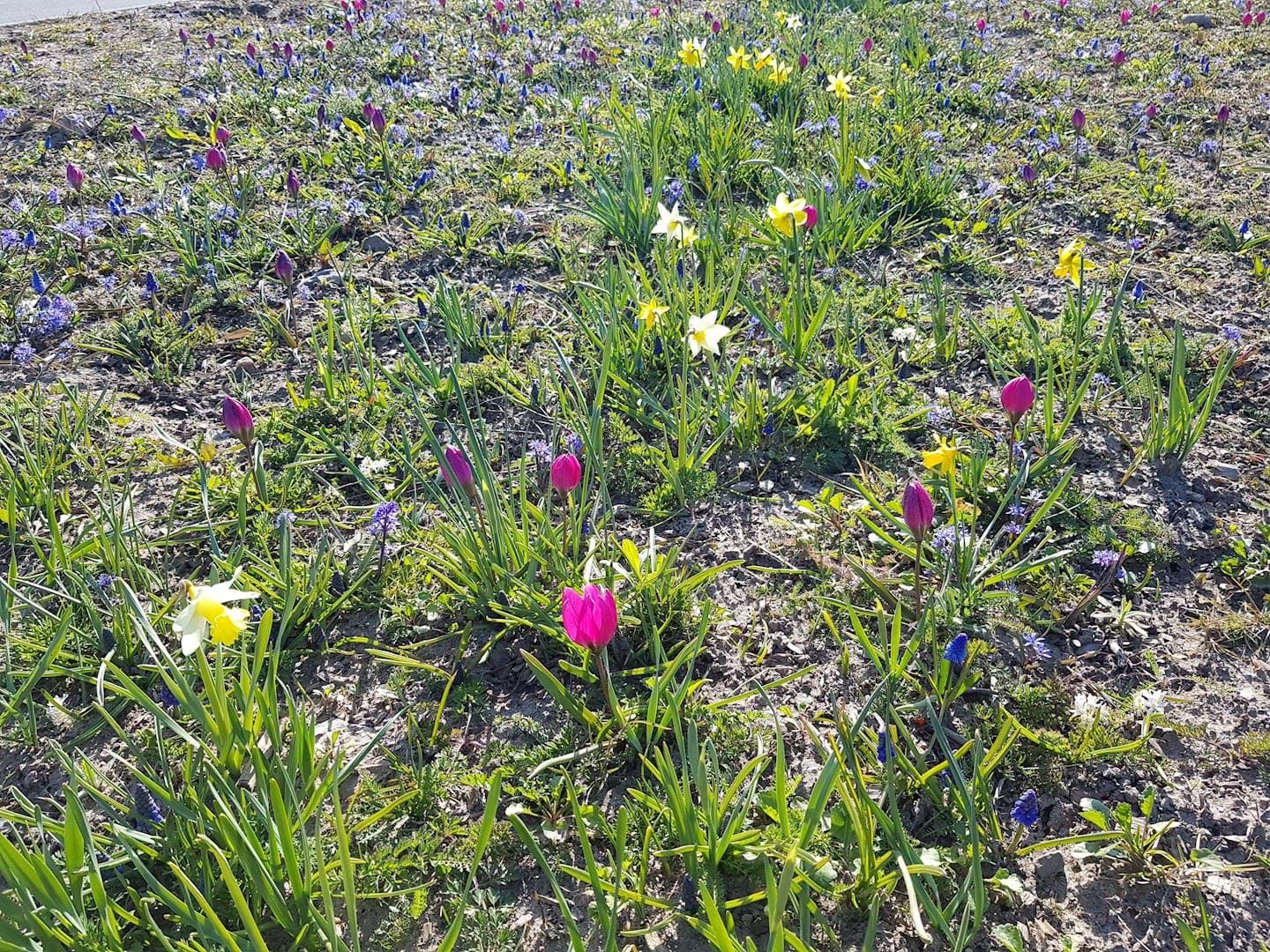 Blomsterblanding udsået i helleanlæg i Ørting. Foto: Merete Johannsen