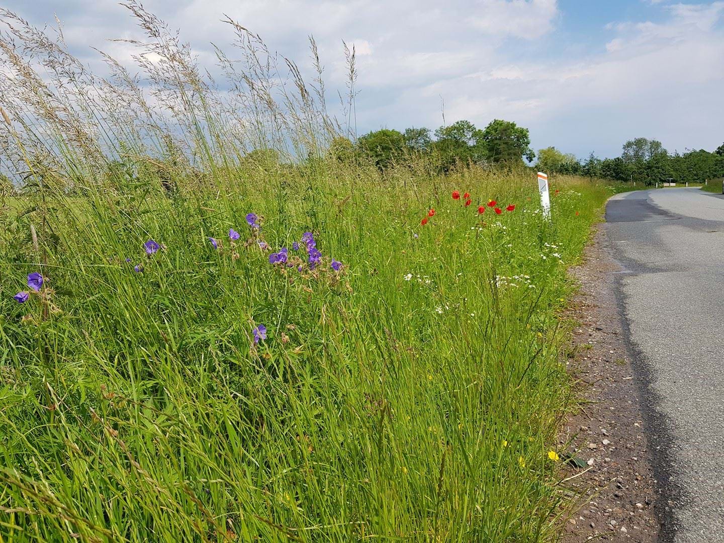Blomstrende grøftekanter er vigtige for bestøvere, padder, fugle og smådyr, og giver trafikanterne muligheder for smukke naturoplevelser.