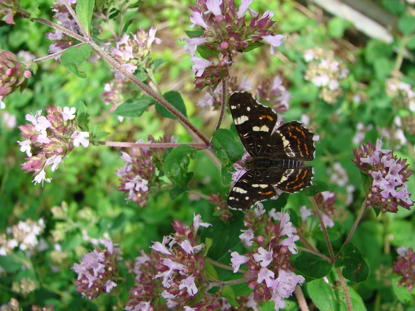 Haveplanter: Forskelligbladet tidsel, Anis-isop, Isop, lavendel, Læge-alant, Merian, Salvie, Timian, Sommerfuglebusk, Aftenstjerne, kaprifolie sp., narcistobak, Honningurt, Hjulkrone, Tidselkugle, Katteurt sp., Floks, Morgenfrue, haveknopurter, Sporebaldrian, Peberrod, Kæmpe-verbena, dild, kartebolle sp.