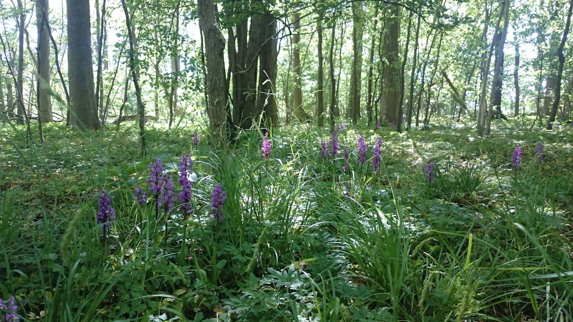 En række af de små lyse løvskove i kommunen har nærings- og kalkrig jordbund, og her finder man små og store bestande af Odder Kommunes ansvarsart, den smukke orkidé Tyndakset gøgeurt.
