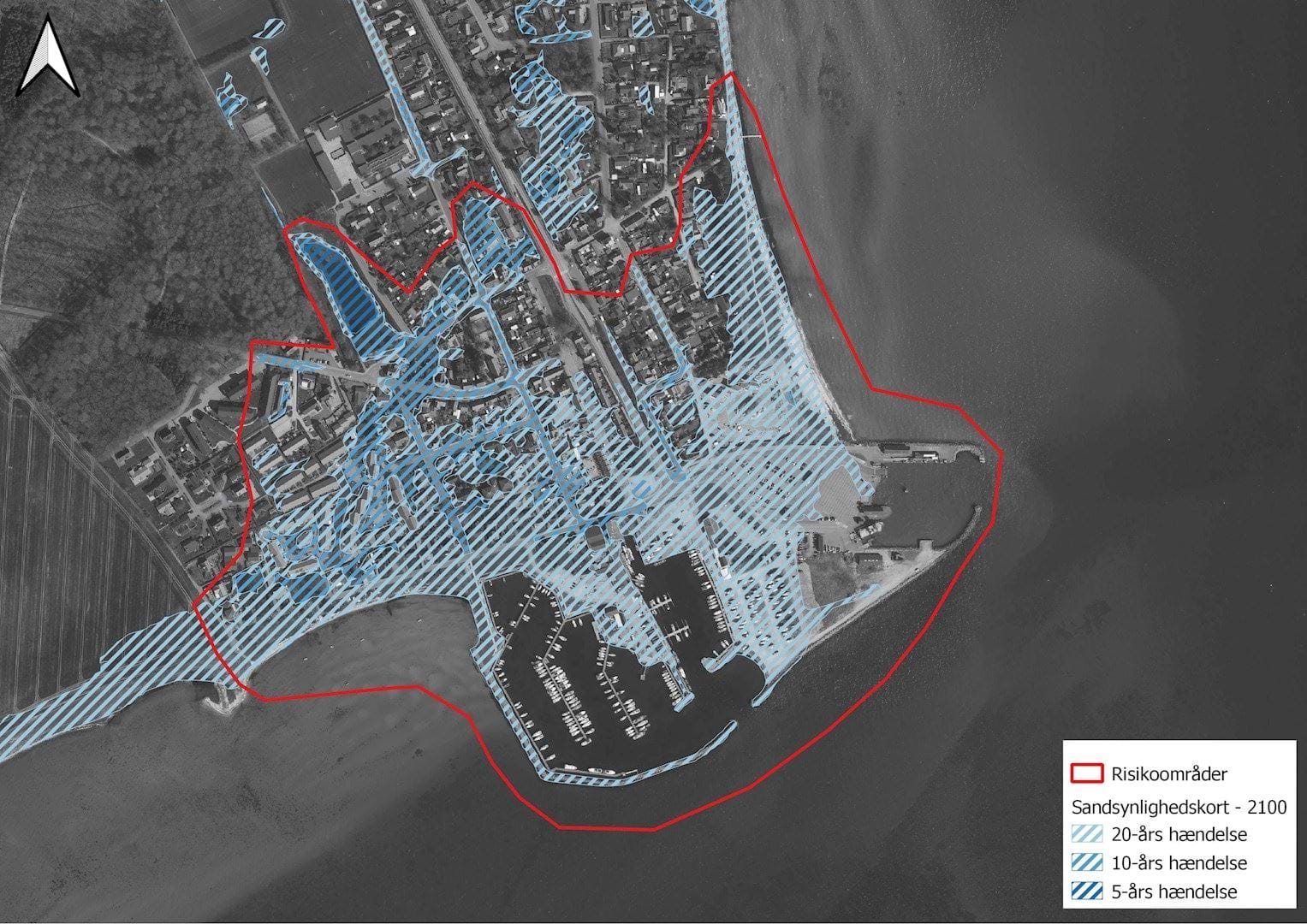 Området er udfordret af havet, grundvand og til dels nedbør. Området suppleres af Risikoområde 22 som kun er fokuseret på grundvand og dækker en større del af Hou. Risikoområde 8 er udsat ved stormflod og nedbør, men på lang sigt også af en mere permanent grundvandsstigning, som dækker et større område. Klimatilpasningen af dette område i forhold til hav og nedbør skal koordineres med udviklingsplanen for Hou og grundvandsindsatsen i risikoområde 22.