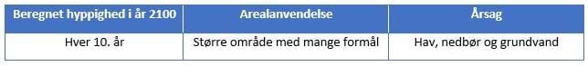 Der skal udarbejdes en handleplan med nærmere analyse af vandudfordringerne, samt forslag til hvordan risikoen for oversvømmelse fra havet og nedbør kan reduceres. Dette integreres med handleplanen for terrænnært grundvand, så vandets samlede kredsløb bliver respekteret, og tiltag kan ses i en sammenhæng. Tiltag – herunder beredskab - vurderes i forhold til virkning, økonomi og organisering i samarbejde med borgerne i Hou. Muligheden for at området kan beskrives i spildevandsplanen, evt. med drøftelse af serviceniveau for oversvømmelser skal overvejes. Handleplanen påbegyndes inden 2025 og forventes udarbejdet inden 2030.