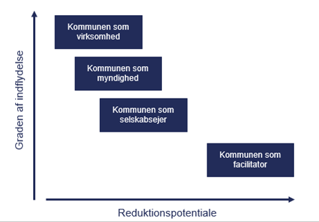 Figuren nedenfor illustrerer kommunens roller og potentiale for at påvirke den grønne omstilling.
