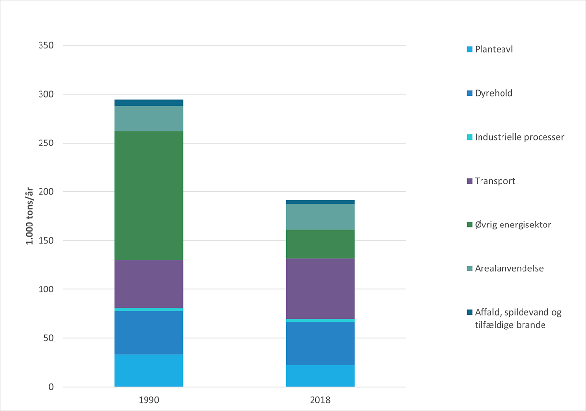 Drivhusgasudledningerne fra de øvrige klimasektorer (landbrug, industrielle processer mv.) har været meget stabil i perioden. De samlede udledninger for hele denne gruppe er faldet med 12 % fra 114.000 ton CO2-ækv. i 1990 til 100.000 ton i 2018. Store dele af denne udvikling kan tilskrives en betydelig reduktion i brugen af kunstgødning til planteavl. Kunstgødning er en stor kilde til CO2-ækv. udledninger. Desuden er der sket reduktioner af emissioner fra bl.a. affaldsdeponier. Når de øvrige sektorer (navnlig husdyrhold og arealanvendelse) har ligget meget stabile, skyldes det, at drivhusgasudledningerne fra disse sektorer kommer fra processer, som det er meget svært at gøre noget ved, uden samtidigt at mindske fødevareproduktionen. Først de senere år er fokus rettet mod mulige tiltag i netop disse sektorer (som præsenteres i det efterfølgende), og der forventes derfor betydelige reduktioner de kommende år.