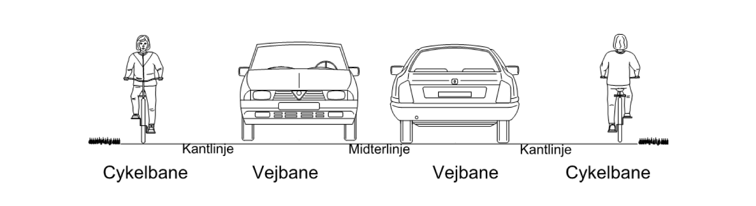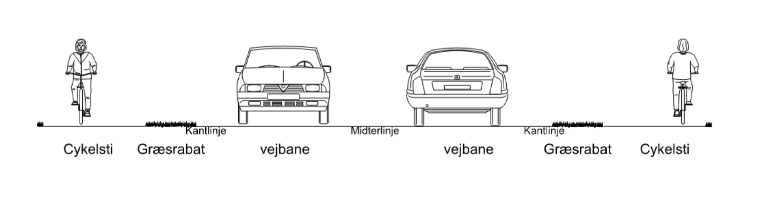 Typisk tværprofil for en seundær trafikvej med cykelbaner