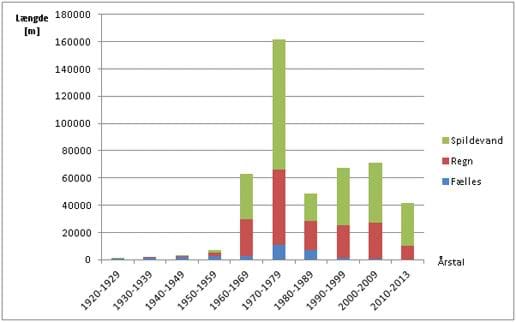 Kloakledningerne, der benyttes i dag, er primært anlagt i en periode fra 1960’erne til i dag. En stor del af ledningerne er anlagt i 1960’erne og 1970'erne, hvor kloakeringsformen i det væsentligste overgik til separatsystem. Disse ledninger udgør ca. 224 km af den samlede ledningslængde.