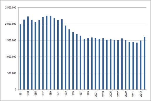Udviklingen i oppumpede vandmængder er vist i figur. I opgørelsen er medtaget forbrug svarende til almene vandforsyningsanlæg i Odder Kommune (V01 og V02). I perioden 1988-1998 er der observeret et markant fald i vandforbrug. Siden 1998 har vandforbruget ligget på omkring 1,4 - 1,6 mio. m3 om året.